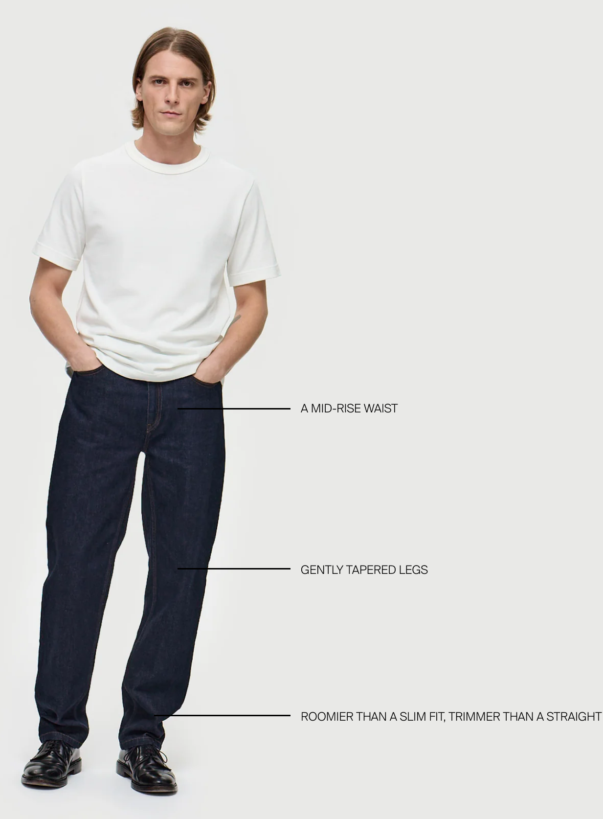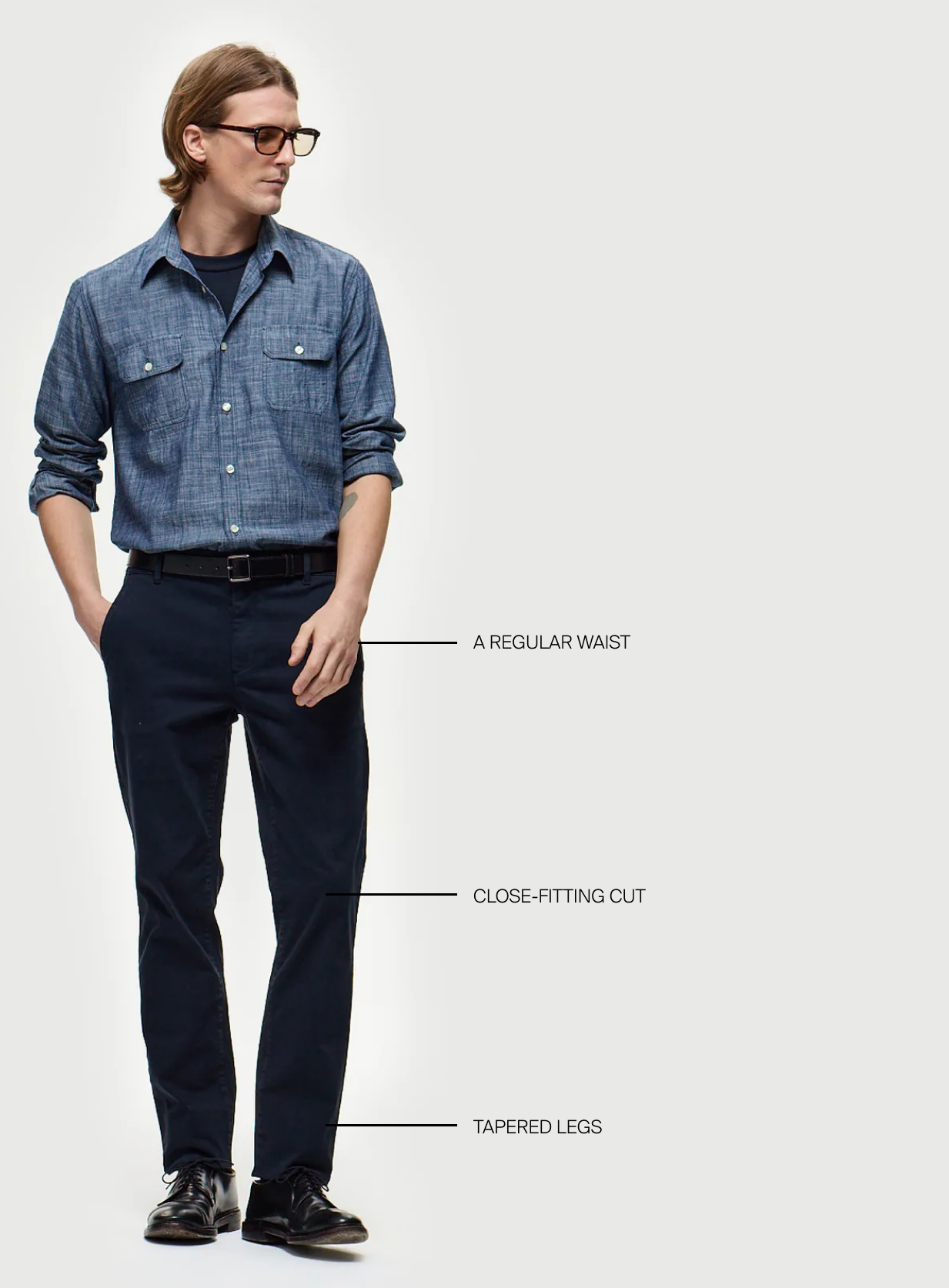 Our straight fit? Foolproof. From waist to ankle, a clean, controlled line that never misses the mark. Democratic in its approach - flattering on every body type - this regular fit is your ultimate wardrobe ally.